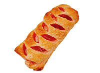 あらびきフランクと粒マスタード、ケチャップをのせたホットドッグ風デニッシュパン